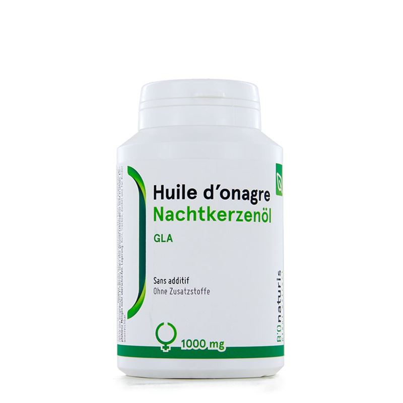Nachtkerzenöl (Oenothera biennis, Herkunft Niederlande), Antioxidans: natürlicher Tocopherol haltiger Extrakt (Vitamin E). Kapsel: Speisegelatine, Glyzerin. Pro 3 Kapseln: 300mg Gamma-Linolensäure(GLA)..