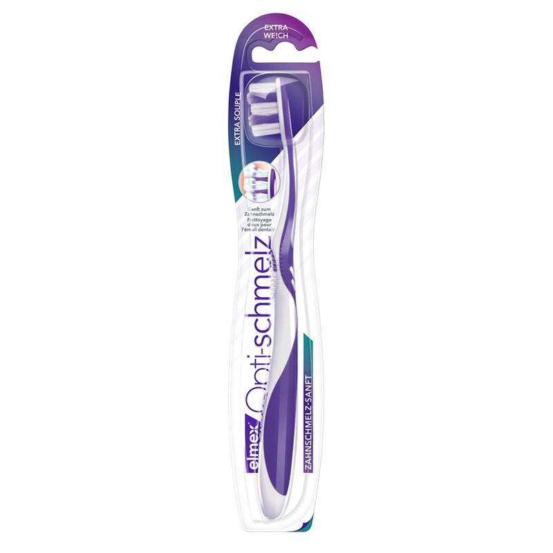 Die elmex Zahnschmelz Sanft Zahnbürste wurde für die besonders schonende Reinigung der Zähne entwickelt. Die etwas höheren, samtweichen Borsten sind zu Zahnschmelz und Zahnfleisch besonders sanft und tragen so zu einer effektiven und nachhaltigen Mundhygiene bei.