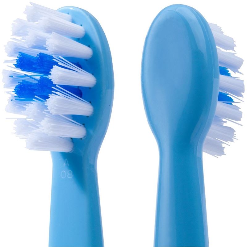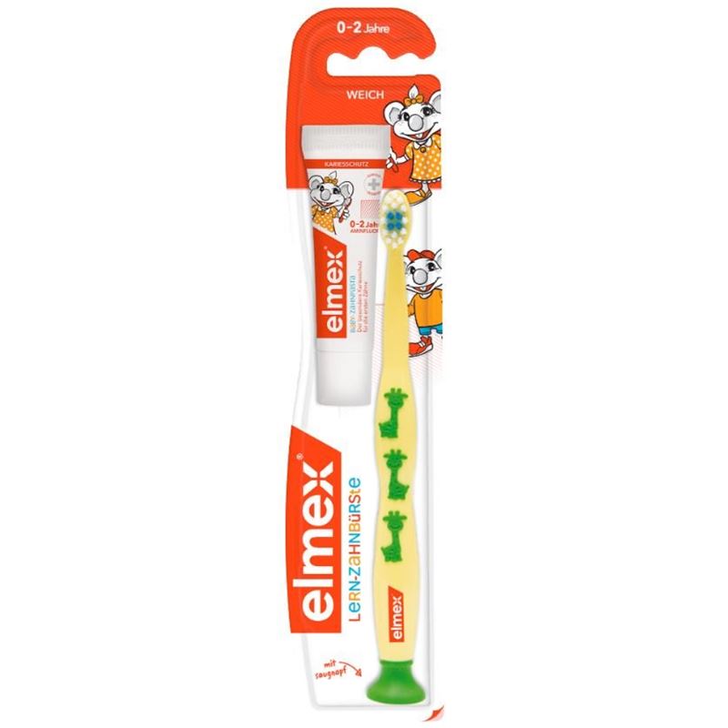 Die elmex Lern-Zahnbürste 0-2 Jahre ist speziell für die schonende Reinigung und Pflege der ersten Zähne entwickelt worden. Der kleine Bürstenkopf ist speziell für Kleinkinder geeignet. Das blaue Borstenfeld erleichtert die Dosierung der erbsengrossen Menge Kinder-Zahnpasta. Weiche, abgerundete Borsten gewährleisten eine schonende Reinigung der Milchzähne. Der Griff ist ergonomisch geformt und speziell für die Kinderhand und das Zähneputzen durch die Eltern entwickelt. Mit Saugnapf für eine einfache, spassige und aufrechte Aufbewahrung. Die Variante, die Sie mit Ihrer Bestellung erhalten, kann variieren und ist nicht frei wählbar.