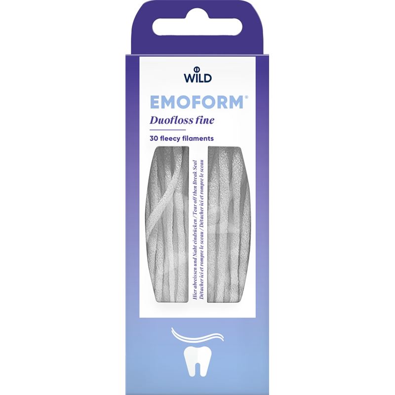 Mit zwei steifen Enden zum Einfädeln und einer Flauschbürste in der Mitte.