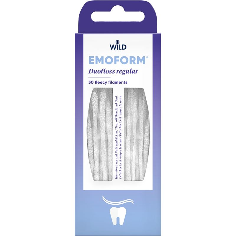 Mit zwei steifen Enden zum Einfädeln und einer Flauschbürste in der Mitte.