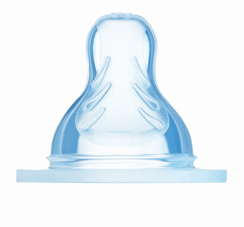 Einzigartig flache Form – liegt immer perfekt in Babys Mund.