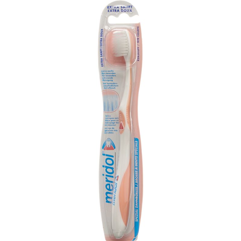 Die meridol Spezial Extra Sanft Zahnbürste ist mit extra sanften, mikrofeinen Borstenenden ausgestattet für eine besonders schonende Plaque-Entfernung bei irritiertem, empfindlichem Zahnfleisch oder nach operativen Eingriffen.